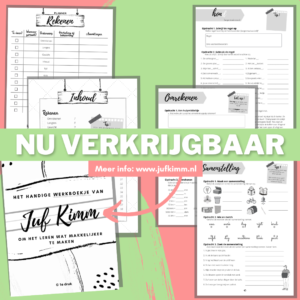 Projecten in ontwikkeling Werkboek metrisch stelsel Werkboek klokken deel 3 - Verhaaltjessommen Webshop Klokkenwerkboek deel 1 $25.00 Het klokkijkwerkboek met alle leerlijnen van analoog klokkijken. Klokkenwerkboek deel 2 $25.00 Het digitale klokkenwerkboek met alle digitale leerlijnen. Posterboekje van Juf Kimm $14.95 Het posterboekje waarin rekenen, taal en spelling visueel worden uitgelegd. Werkboekje van Juf Kimm $32.95 Het werkboek waarmee leerlingen zelfstandig of onder begeleiding kunnen werken aan leerdoelen van groep 5 tot en met groep 8.